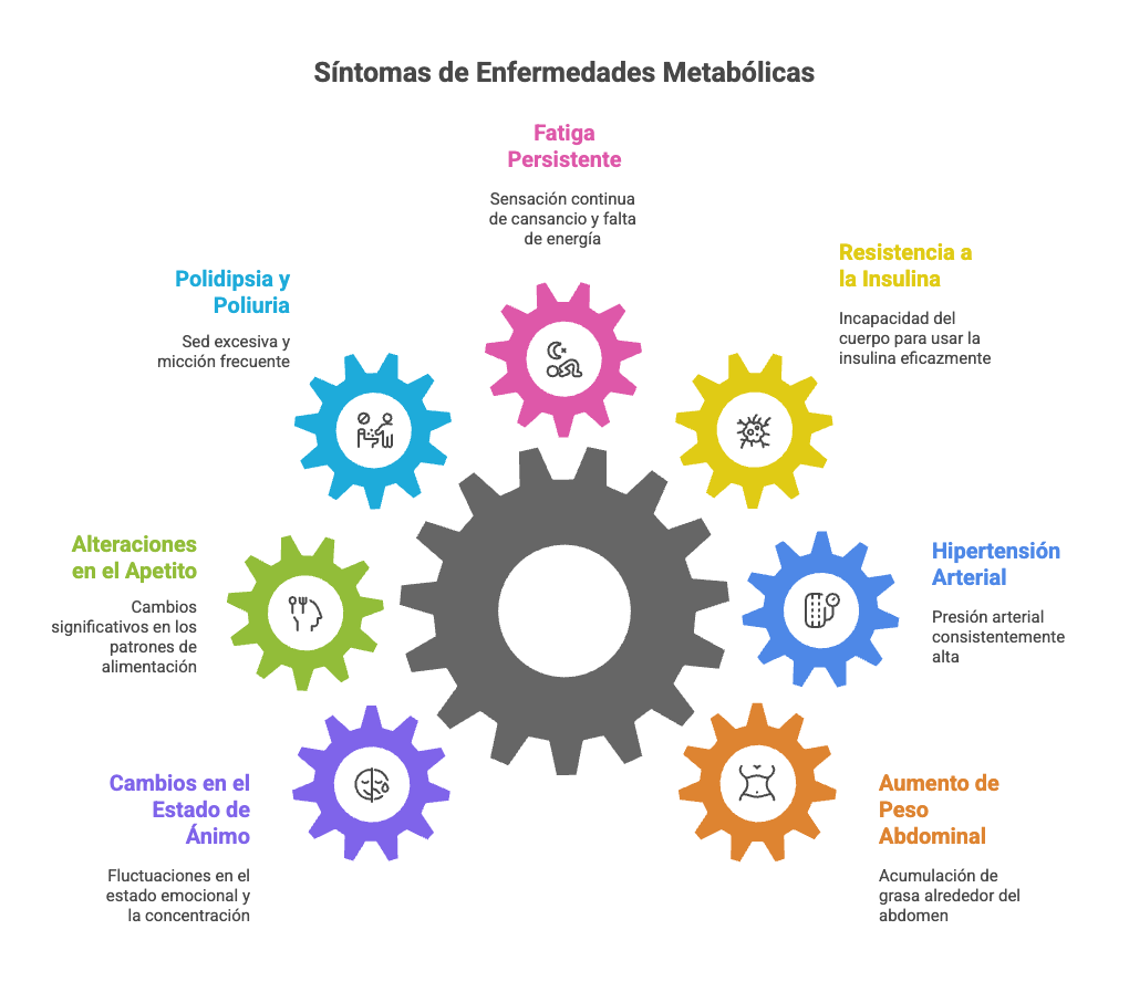 Síntomas principales de enfermedades metabólicas (síndrome metabólico, diabetes tipo 2, dislipidemias, obesidad):